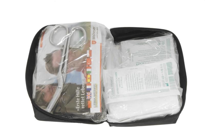 This kit contains all the essential items for motorcyclists that are required to meet the DIN 13167 standard. Self-adhesive bandage tape, self-adhesive dressing, rolls of bandage, a first aid blanket, scissors, vinyl gloves and first aid instructions are included.