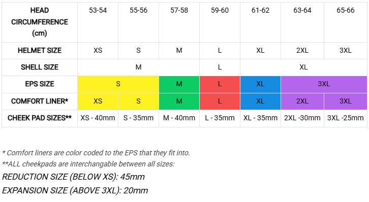 - Interchangeable/replaceable cheek pads & crown liner thickness within sizes.