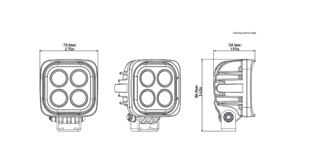 The fixed lens features two flood optics and two spot optics to create the ultimate hybrid beam pattern; a super wide close-range flood and a piercing spot beam in one housing.