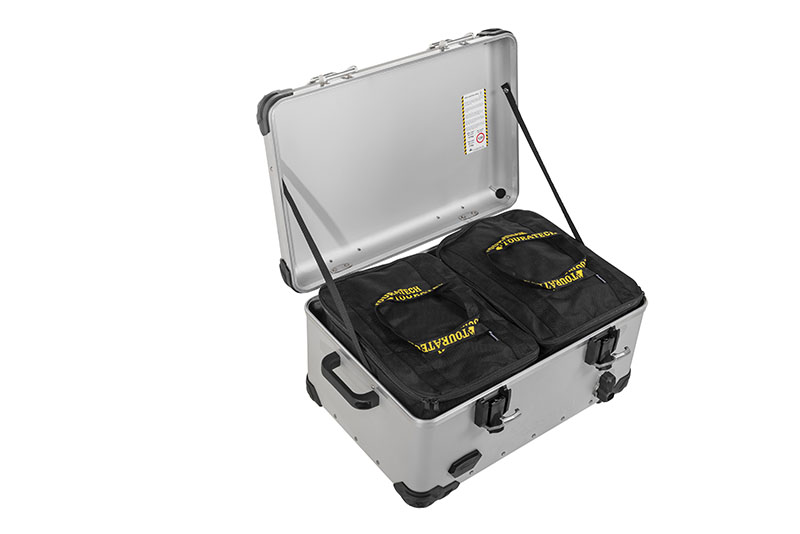 n addition to our Alu-Natur version, the Topcase XXL is also available in our anodised versions And-S and And-Black in the ZEGA Evo pannier look. It goes without saying that you’ll also find our proven plastic corners on this jumbo topcase as well. The Touratech obligatory attachment eyes on the lid and the typical ZEGA Evo (AND-S & AND-Black) hooks inside the lid allow you to upgrade your new Topcase XXL individually. Of course, the topcase can also be locked and it is waterproof. (Lock set not included.)