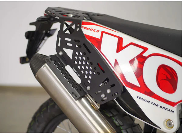 This rear luggage rack is perfect for mounting a variety of soft luggage and a tail-pack securely to your KOVE 450 Rally, without having to worry if it’s going to end up in your rear wheel or melting on the silencer.