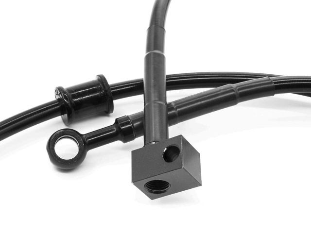 - Kit includes braided stainless steel lines covered with a UV resistant black PVC coating and built in strain reliefs for increased durability and performance.