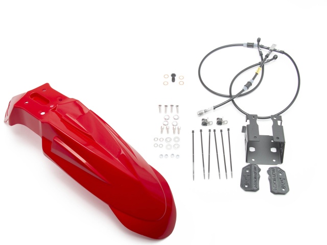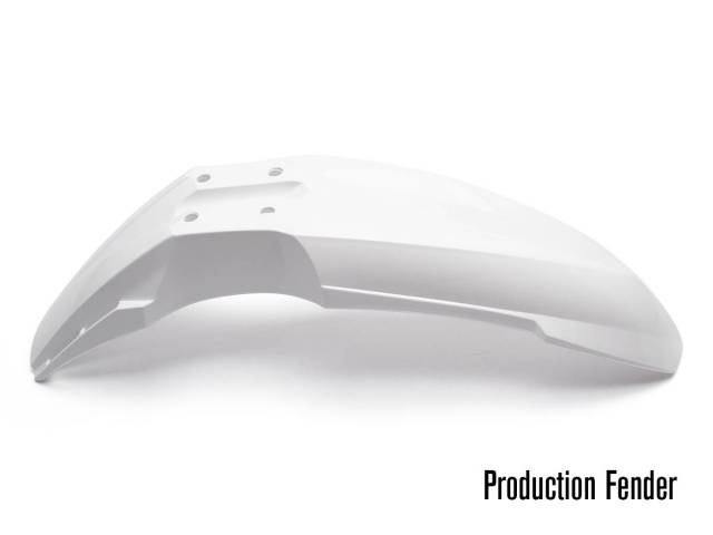The AltRider High Fender Kit utilizes a mid-length plastic dirt bike fender, which is pre-drilled for mounting and available in four colors; black, white, red or blue.