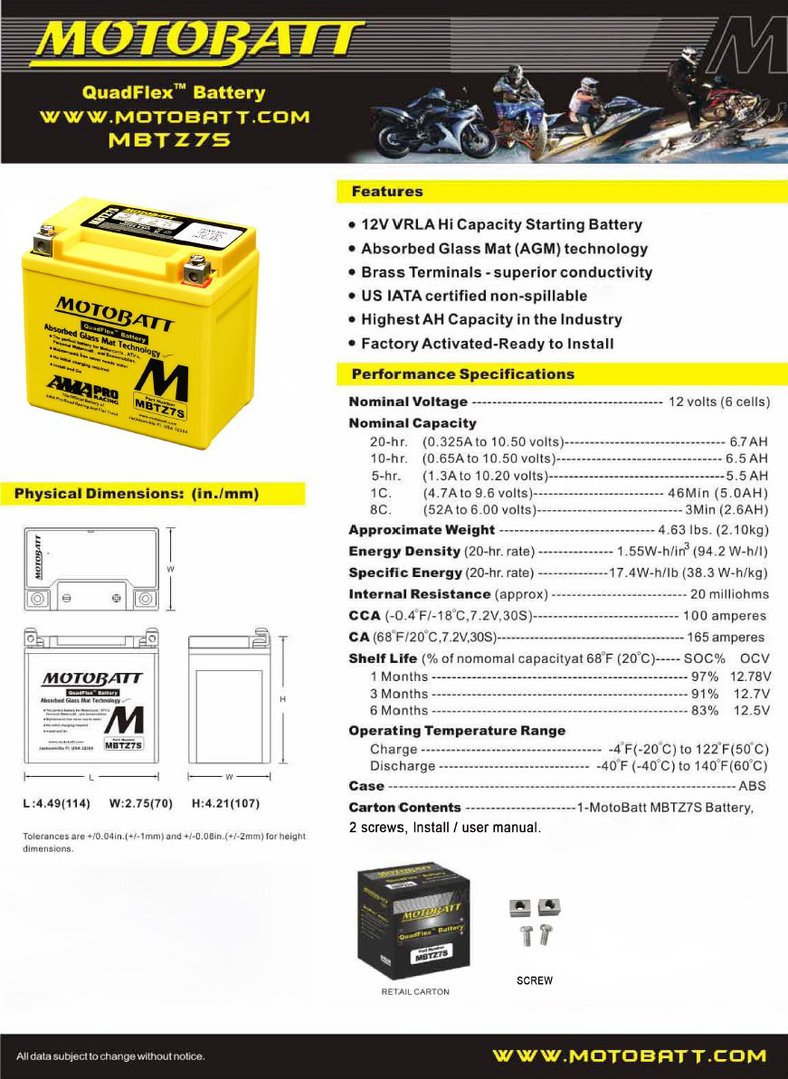 Every MotoBatt power sport battery is of the sealed lead acid AGM type and will never leak acid which destroys your bikes finish.