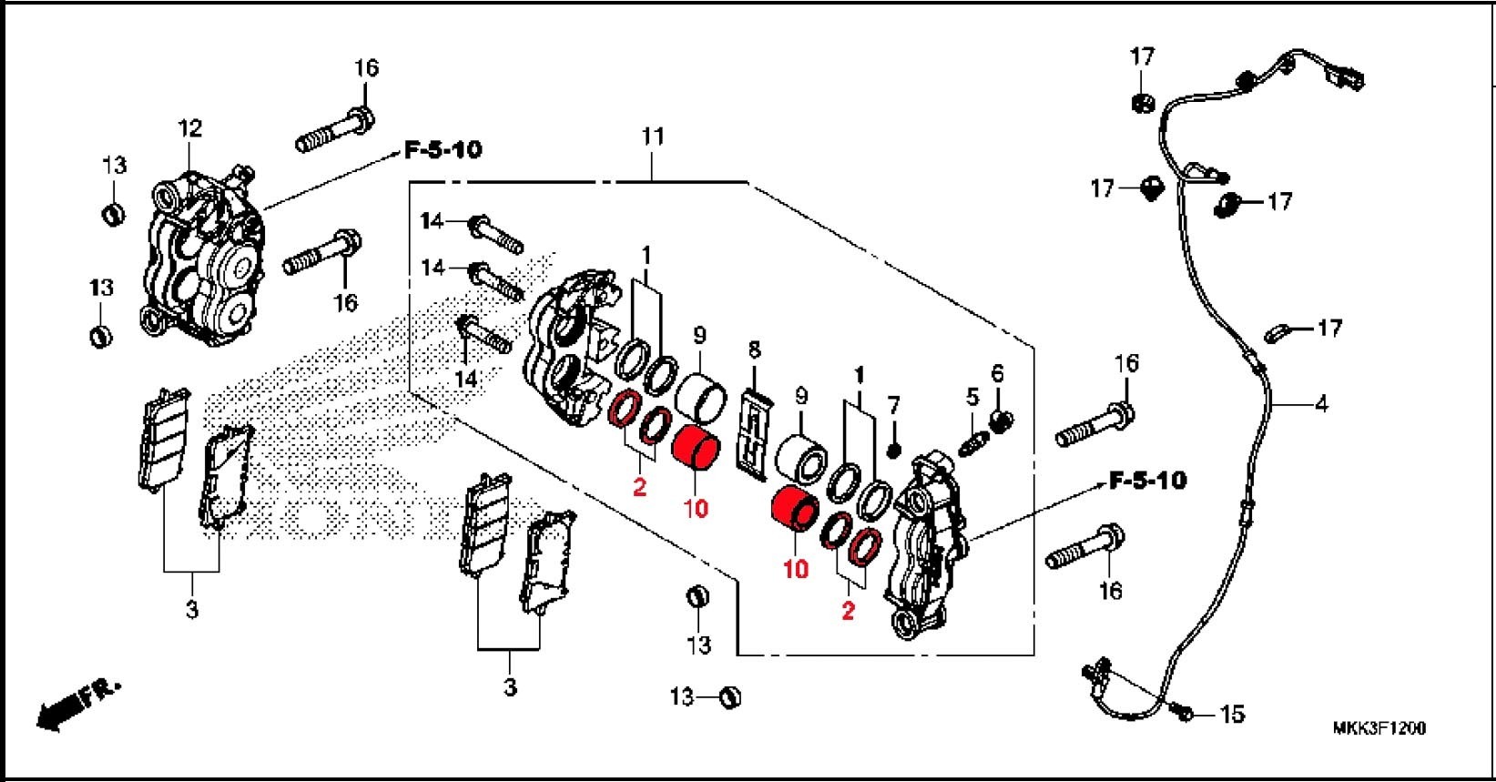 Brake Caliper FRONT SMALL Piston And Seal Kit – CRF1000 (all models)