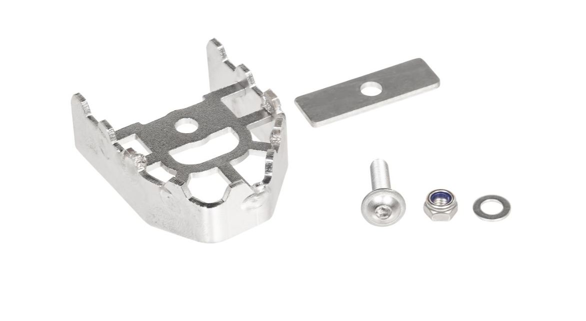 The extension is made from 2 mm thick electropolished stainless steel, making it virtually indestructible. Fitting it onto the existing mounting points is simple and straightforward.