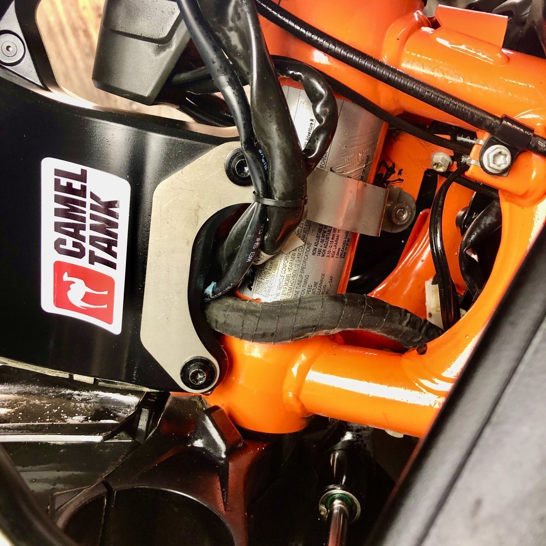 The CamelADV 790 Neck Brace supports the four troublesome mounting posts by tying them together and attaching to a mounting tab behind the bike’s head tube. This keeps the posts from flexing and breaking off.