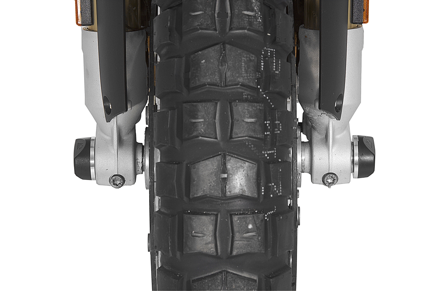 To complement our cardan crash bungs, we also offer crash bungs for the front axle of your GS. These small but effective parts efficiently protect the critical points of your bike and prevent damage to your fork legs and axle seats in the event of tipping over. Available as a set for both sides.