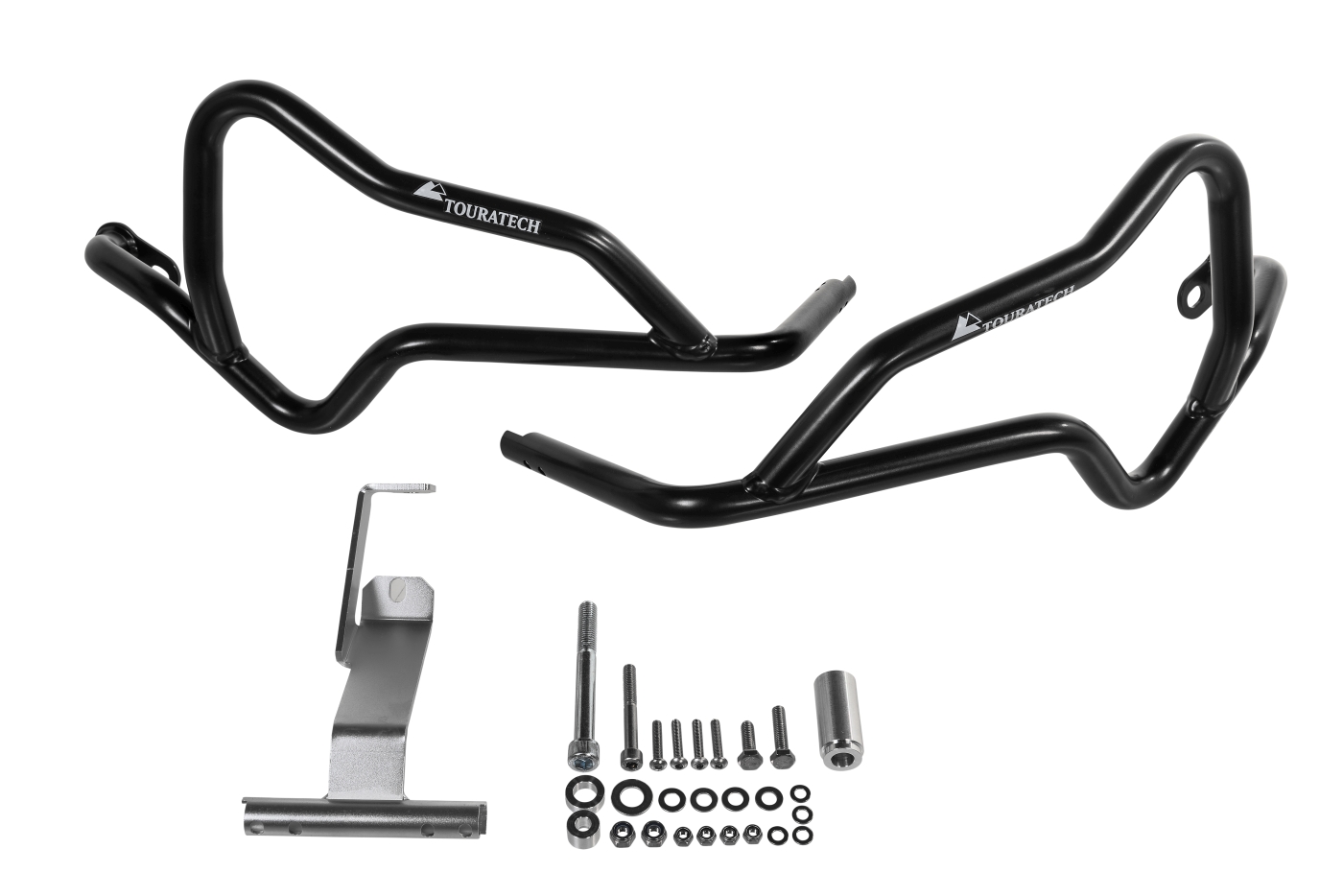 The crash bar is made of high quality, black stainless steel and extends the range of use of your travel enduro. The two-component crash bar was fitted as close as possible to the vehicle to give harmonious integration into the existing vehicle design. Its special design provides optimal force dissipation and largely protects the radiator as well as the tank and fairing against damage. The crash bar is simple to install, rust-proof and easy to care for.