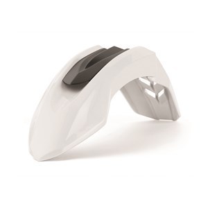 Due to the short distance from the bike’s triple clamp to the rad guard and the overall size of the fork guards, we are including the PoliSport SM Line/UFX fender in a choice of either WHITE or BLACK