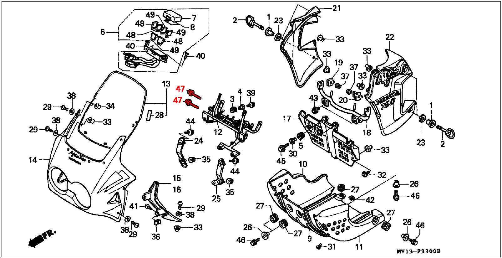 These bolts are used to mount the front subframe to the main bike frame of your XRV650 RD03 and XRV750 RD04.