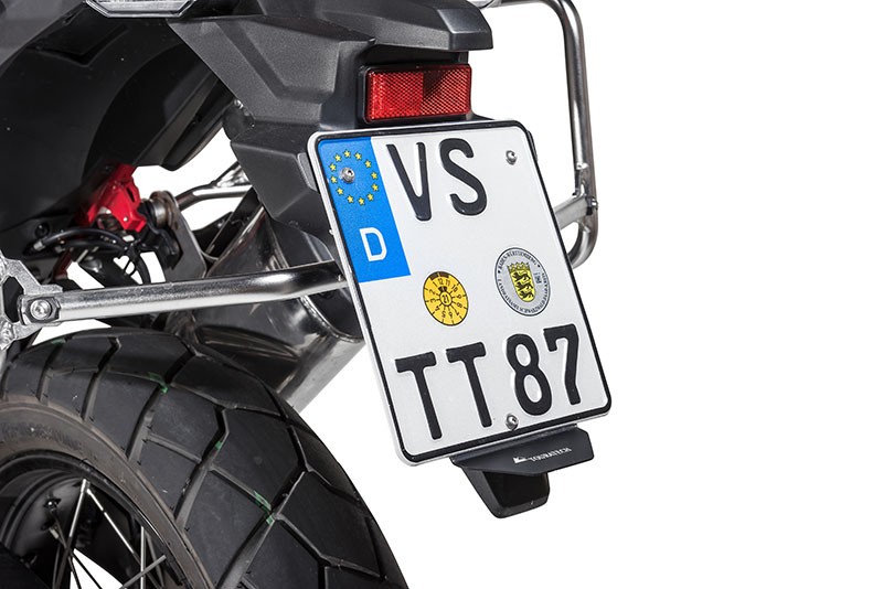 The Touratech splash guard has been specially adapted to the contours of the number plate holder. Beautifully integrated in the vehicle design, it is also suitable for smaller number plates.