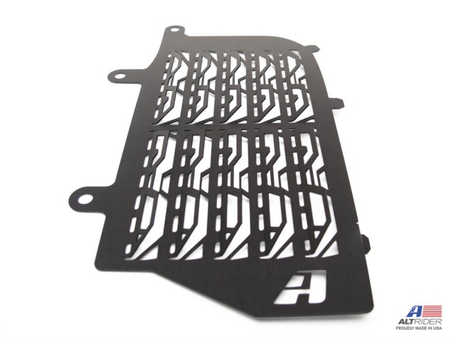 AltRider Radiator Guards are constructed from 1.4 mm aluminum and feature louvered cutouts, a technique that serves two important purposes. First, the bent louvers increase the stiffness of each guard in comparison to guards with flat cutouts or screens. Second, the louvers allow greater airflow compared to flat cutouts while the angled design provides maximum coverage from rocks and other debris. The laser cut guards are grained to remove burrs, formed and anodized for durability.