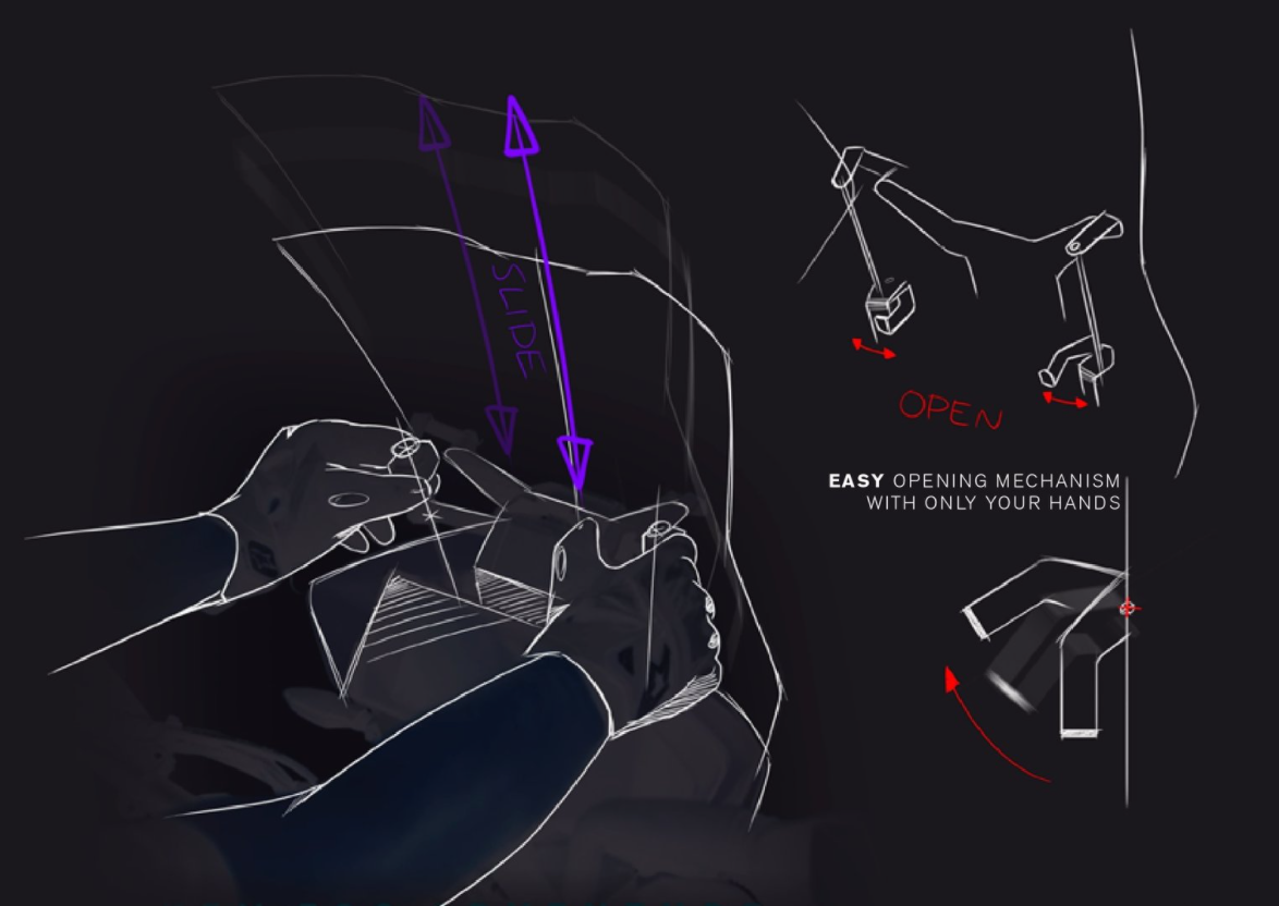 You can activate the mechanism and place the screen in the position you want with a quick and easy “click” on the side tabs, and reattach it with just your hands, without the need of tools. The mechanism can be mounted with your OEM screen or with aftermarket screens.