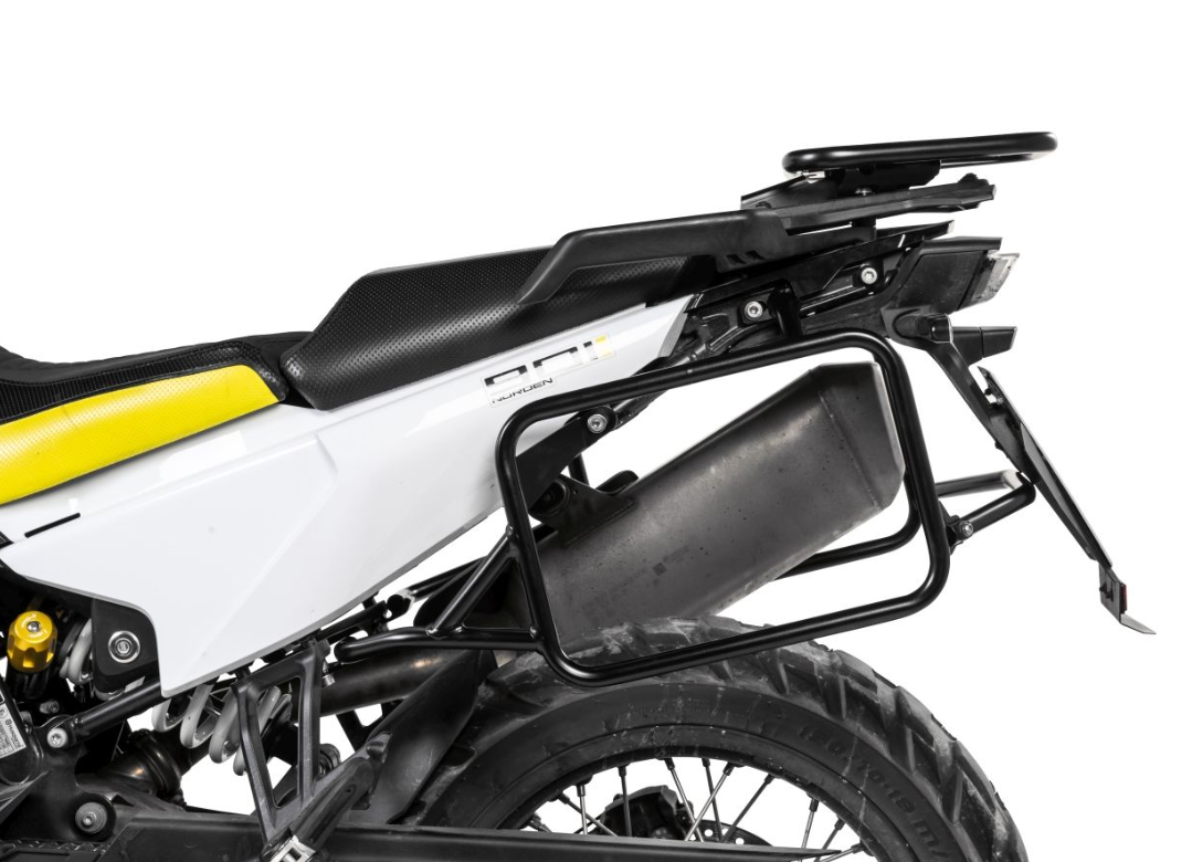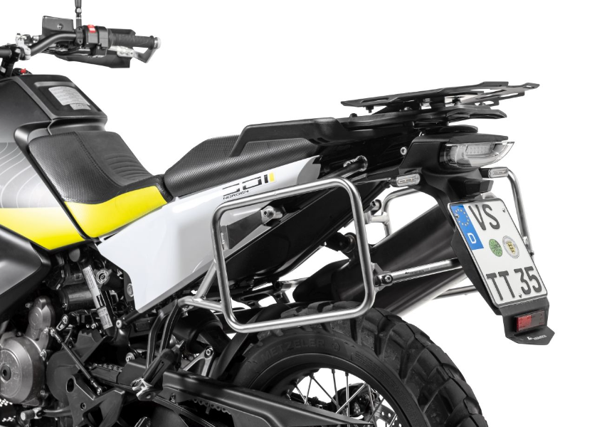 Touratech’s stainless steel pannier rack for the Husqvarna is a sturdy rack designed to take Touratech ZEGA Evo, ZEGA Pro and ZEGA Mundo cases. This is the perfect case system for extended touring. Made of 18 mm stainless steel tubing, this non-rusting system matches the appearance of the Husqvarna frame and guarantees extra high stability even off the beaten track.