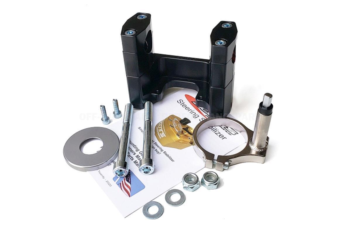 The sub-mount steering damper kit for the Tenere 700 consists of a SCOTT’s off-road type steering damper. It also includes the matching CNC-milled attachments.