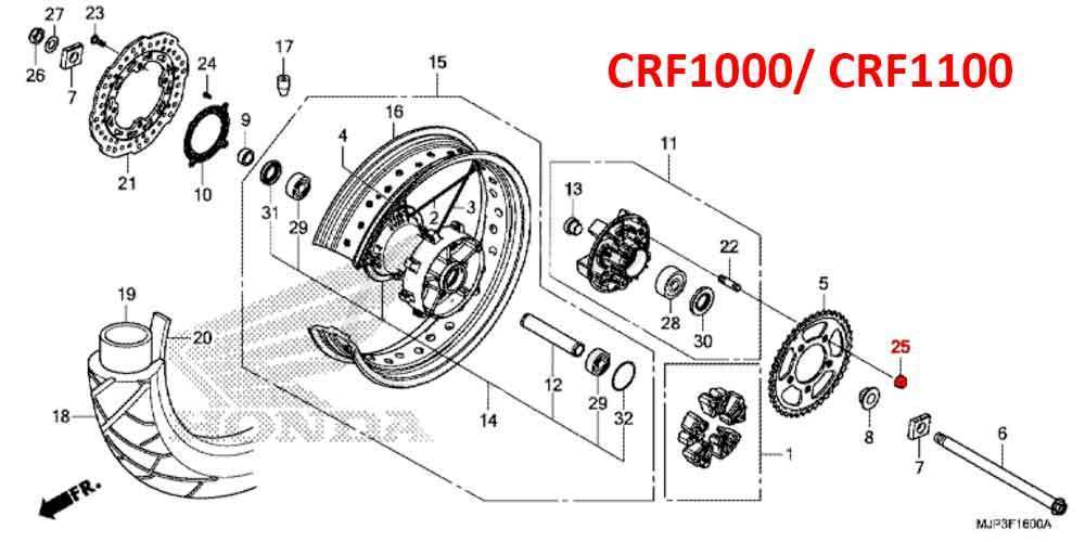 • 5 of these nuts are used on the rear sprocket for the CRF1000 and CRF1100 – see diagram