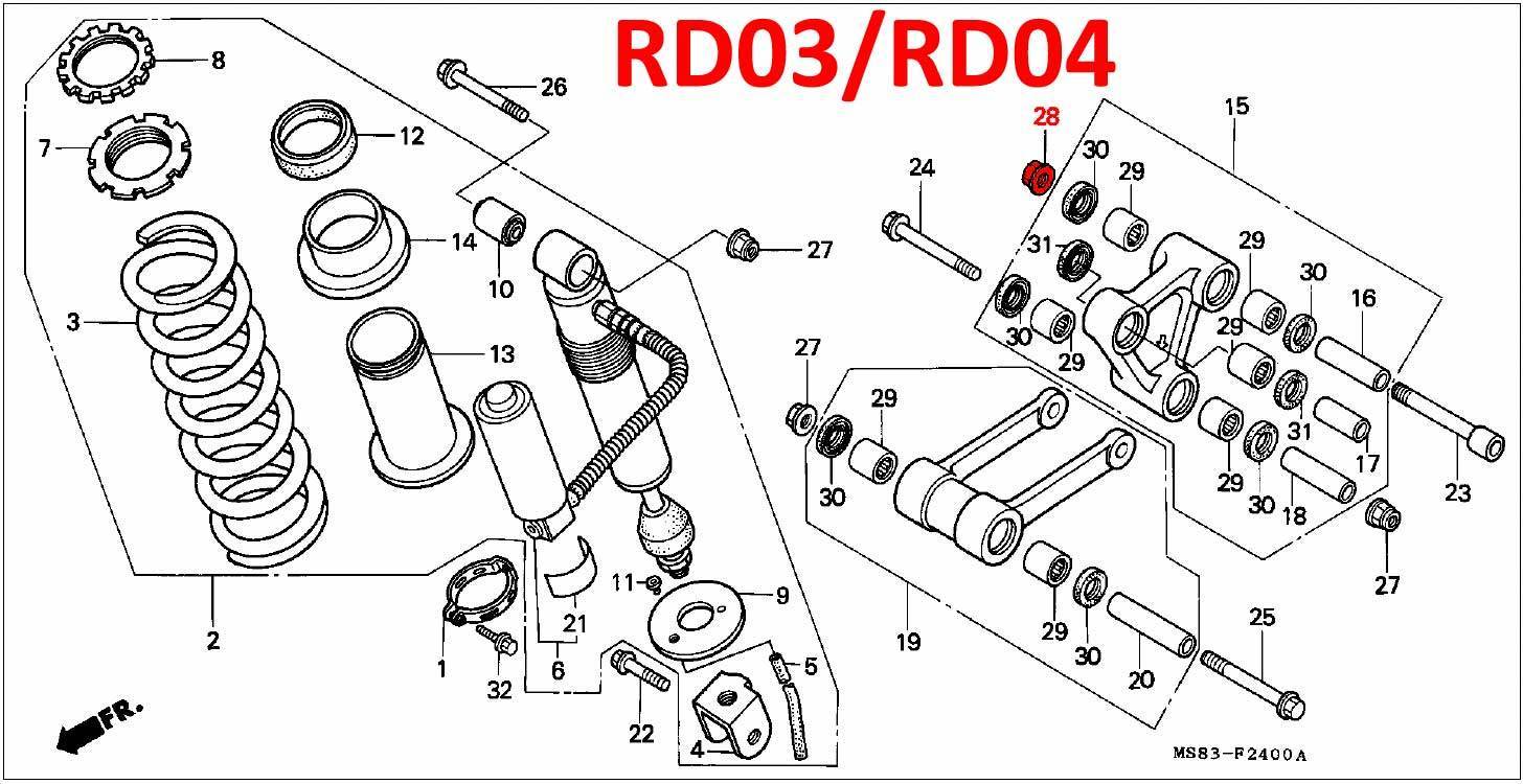 • This nut is used on the Suspension knuckle on all models – RD03/04/07/07A – see diagram