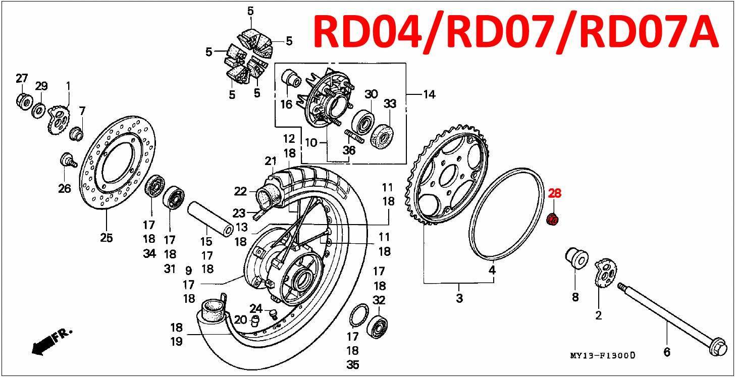 • 5 of these nuts are used on the rear sprocket for the RD04/07/07A – see diagram