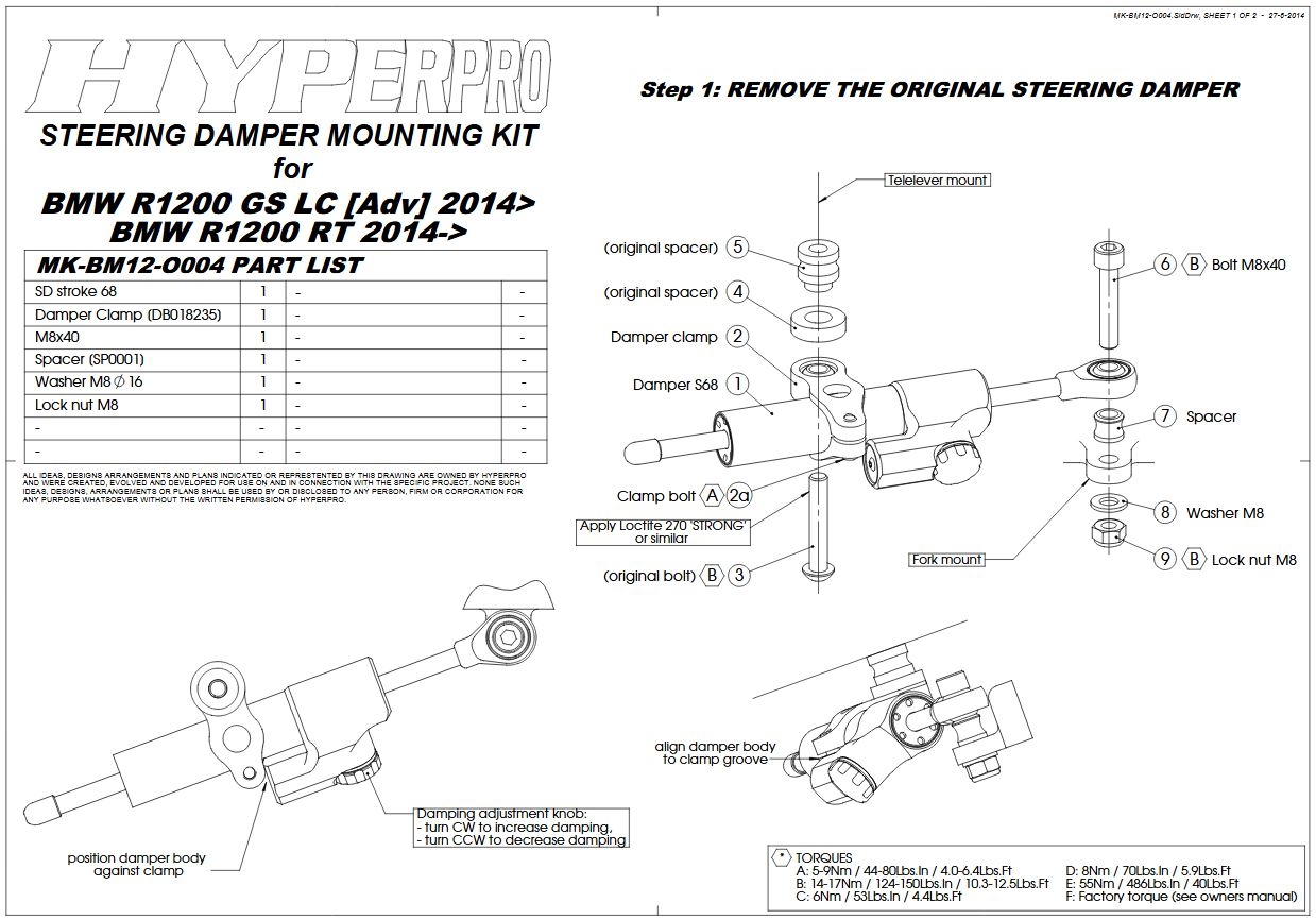 – Touratech CSC steering damper is supplied complete with the appropriate mounting kit