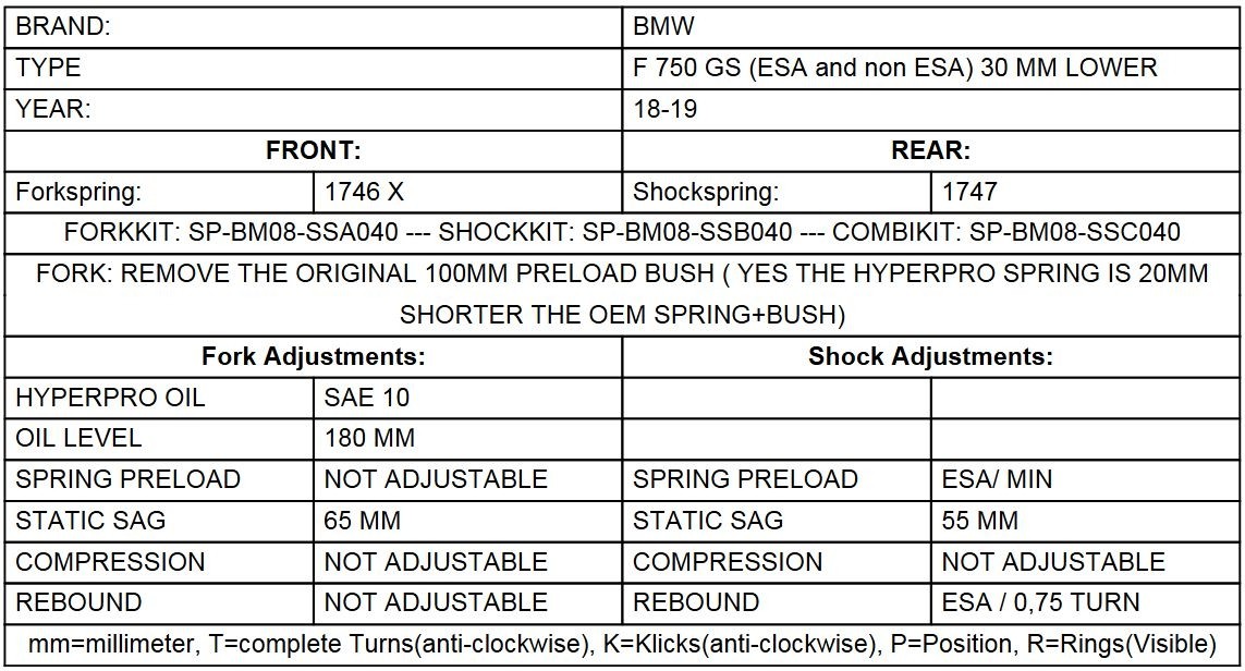 Height lowering kit, 30mm, for BMW F750GS from 2018 replacement springs