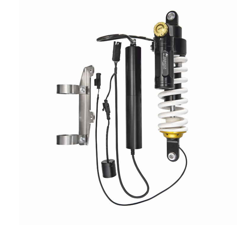 These electronic suspension elements can be used to replace the standard Dynamic ESA shock absorbers on the BMW R 1200 / 1250 GS without any modifications to the vehicle. Installation is now even easier thanks to the new, slimmer layout. All standard plug connections are retained and operated as usual via the standard switches. All the presets provided for by the vehicle manufacturer for the various riding modes and payload adjustments are available as usual.