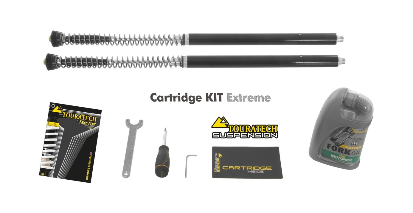 This Cartridge Kit is perfect for reducing the seat height (-35mm) on the Husqvarna Norden 901. Putting it simply, the Touratech Suspension Cartridge Kit Extreme is a suspension strut for the fork and the absolute top end in terms of suspension technology. The Closed Cartridge is installed into the original fork. This way the fork bridge/handlebar mount, brakes and wheel control and handlebar geometry are retained in full. No additional modifications to the fork are required This Closed Cartridge is been developed perfectly for touring and riding with frequent and strongly differing loads and riding conditions or extreme requirements.