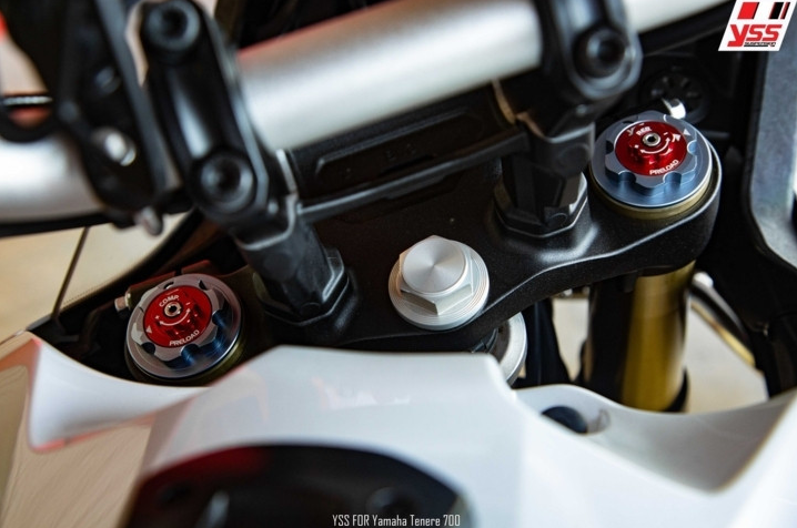 The kit is specifically developed for the Yamaha Tenere 700. They are adjustable on spring-preload, compression damping and rebound damping.