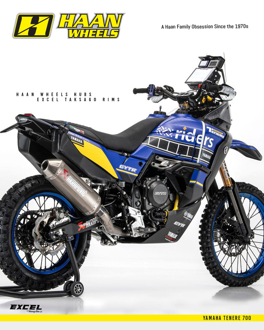 At Haan Wheels we make complete wheels for many adventure motorcycle models. All our wheels are built with only the best quality parts available. The wheels are available in many several combinations for the hubs and rims.