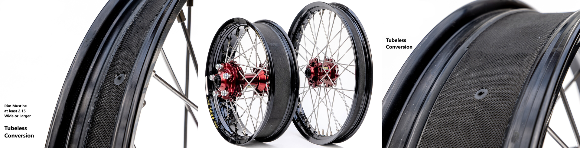 Complete Tubeless wheels for your Adventure Bike with Haan Wheels hubs and Excel rims.