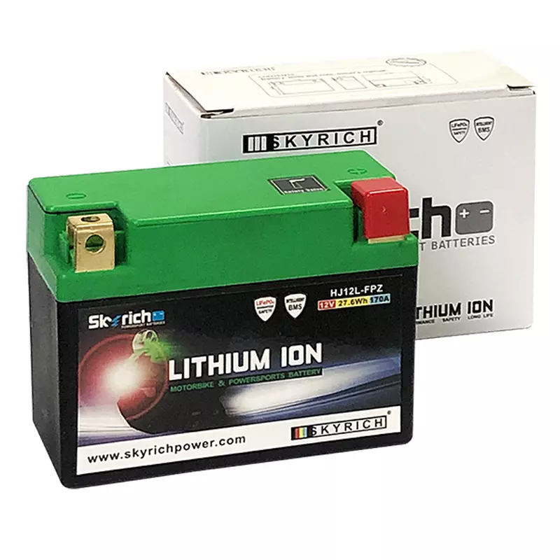 The Skyrich HJ12L-FPZ lithium-ion battery offers a revolutionary combination of low weight, high starting power, and long lifespan.